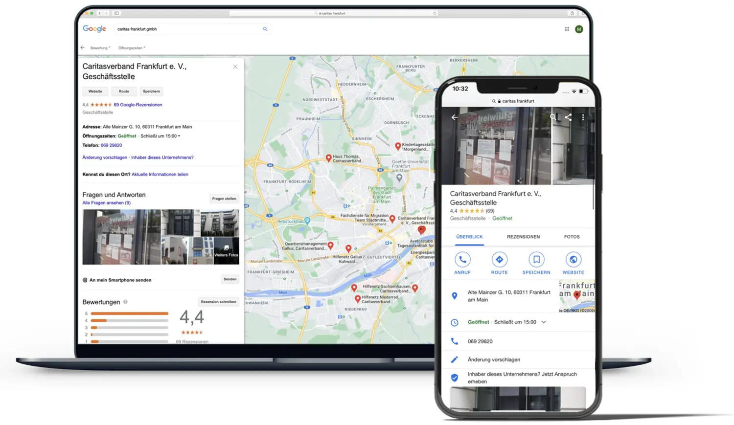 Wir sind zertifizierter Google Unternehmensprofil Partner, verwalten Ihren Eintrag und erledigen die Datenpflege fĂŒr Sie. So haben Sie mehr Zeit, sich auf Ihre Kunden zu konzentrieren.